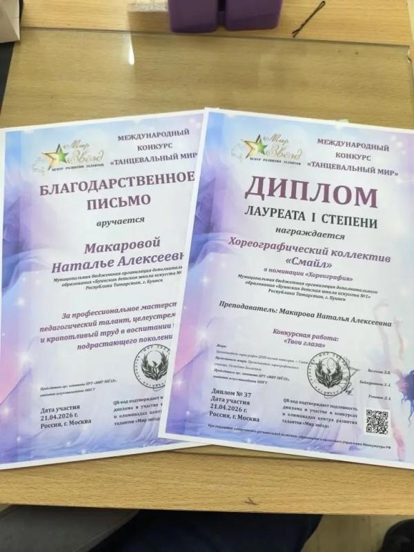 Хореографический коллектив "Смайл" и Березкина Диана приняли участие в Международном конкурсе "Танцевальный мир".