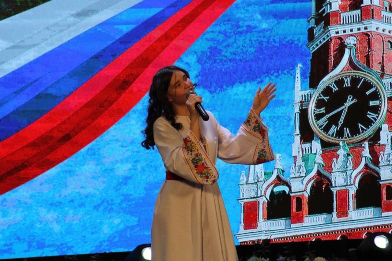 Песню о России всем подарила ученица нашей школы Аристова Ильвина(Руководитель Мусина К.С.)