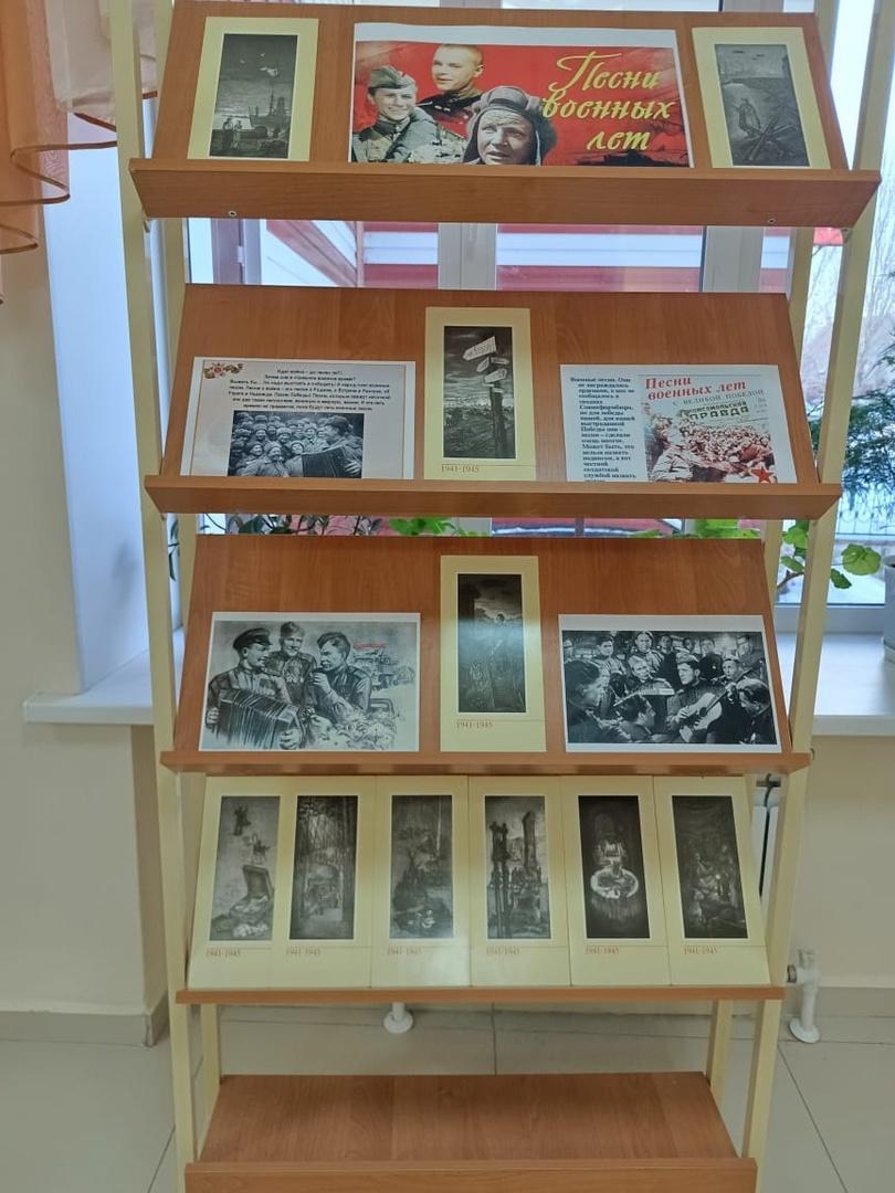 В фойе 1 этажа МБО ДО БДШИ 1 оформлена книжная выставка, на которой представлены песни военных лет, песни о Победе: «Катюша», «В землянке», «Весна сорок пятого года», «День Победы» и многие другие.