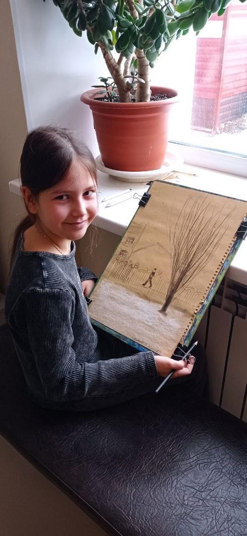 Тема урока: "Зимние зарисовки". На уроке дети впервые использовали мягкие материалы для графики - уголь и белую пастель. В качестве основы для эскиза дети использовали крафтовую бумагу, научились делать растушевку. Это было первое знакомство с выразительными возможностями мира графики.