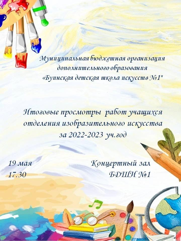 19 мая в 17.30-Итоговые просмотры работ учащихся отделения изобразительного искусства.