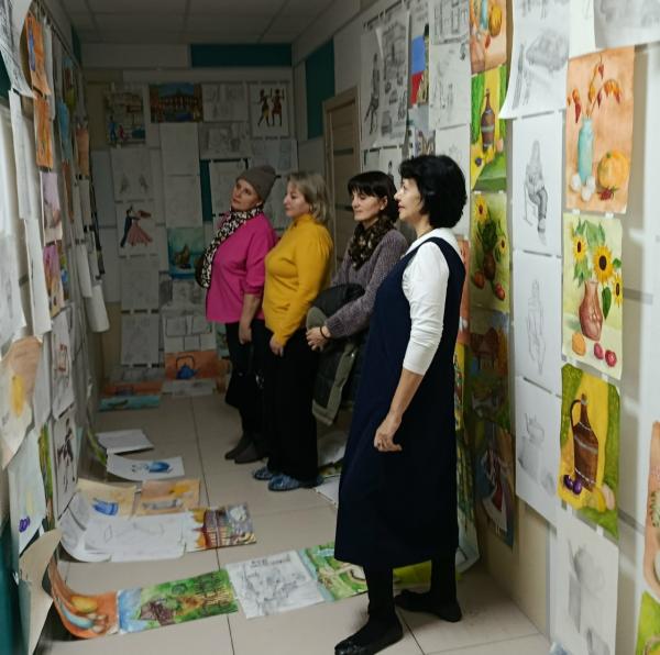 Об итогах 1- го полугодия , участие в конкурсах и безопасность во время каникул. Преподаватель ознакомила родителей с выставкой работ и поблагодарила за сотрудничество в воспитании и образовании детей.