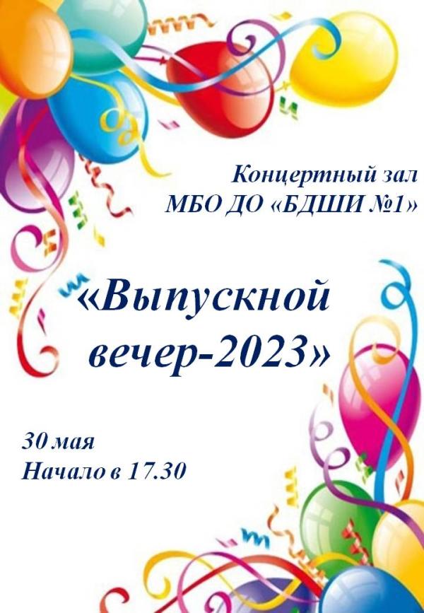 Дорогие выпускники и родители! Уважаемые коллеги!Приглашаем вас на выпускной вечер, который состоится 30 мая 2023 г. в 17.30 в концертном зале МБО ДО БДШИ 1!