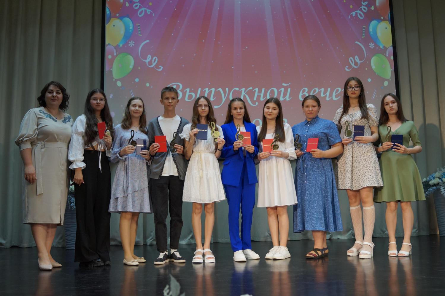 Для многих в Детской школе искусств настал особенный, волнительный, трепетный, радостный и немного грустный день: для преподавателей, у которых подошел к концу еще один учебный год, для родителей, потому что в жизни их детей можно поставить очередную запятую, и, конечно же, для выпускников – героев вечера.